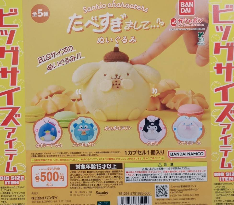 しなこちゃん新作やサンリオビッグサイズガチャが入荷済✨