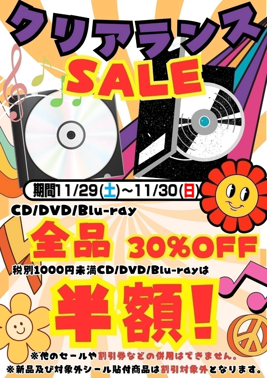 CD/DVD/Blu-ray💿が全品表示価格より30%OFF!!
