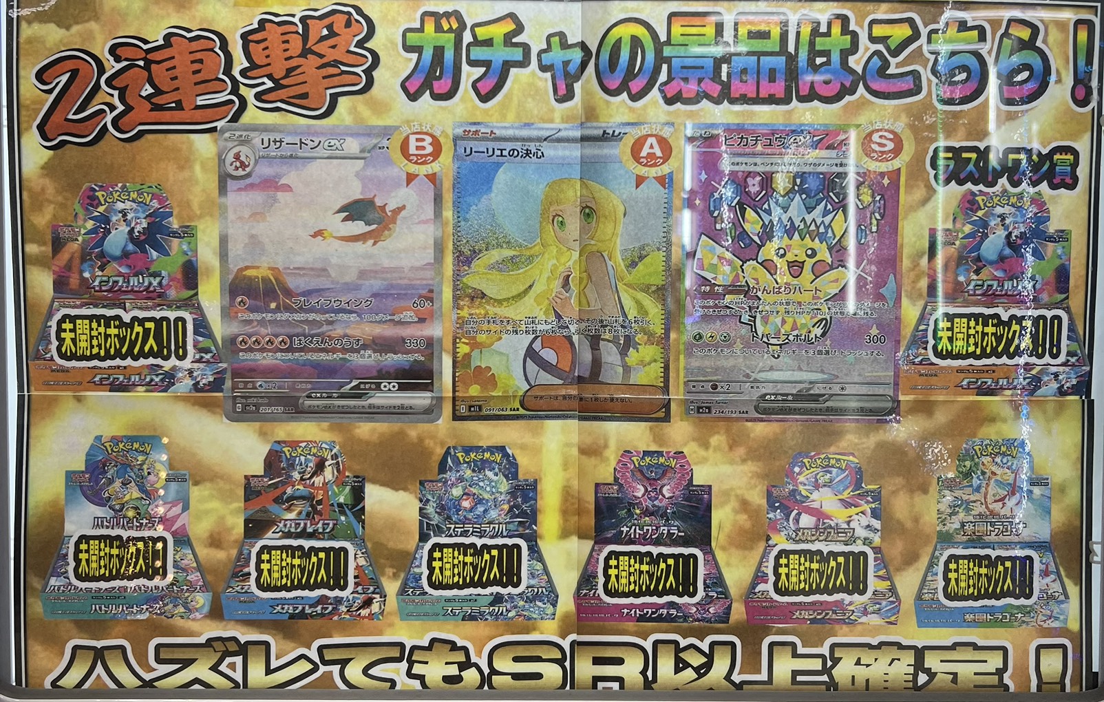 ちなみに当店から景品として交換されたインフェルノXからメガリザードンexSARが出たと2件報告受けてます‼