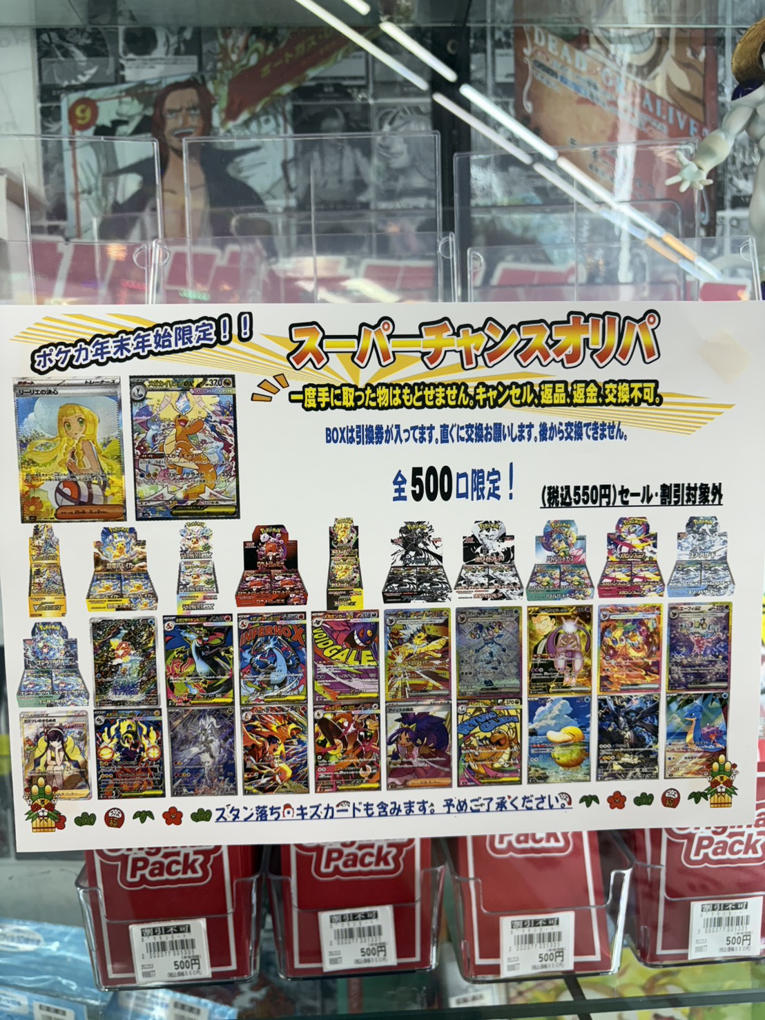 【大村店】ポケカ年末年始限定 スーパーチャンスオリパ!! ひと口税込み550円 全500口 販売開始しました! マンガ倉庫大村店 カード トレカ 2025年12月13日 ポケカ年末年始限定 スーパーチャンスオリパ!! ひと口税込み550円 全500口 販売開始しました! 当たり盛り沢山!ラスワンもありまーす! 関連