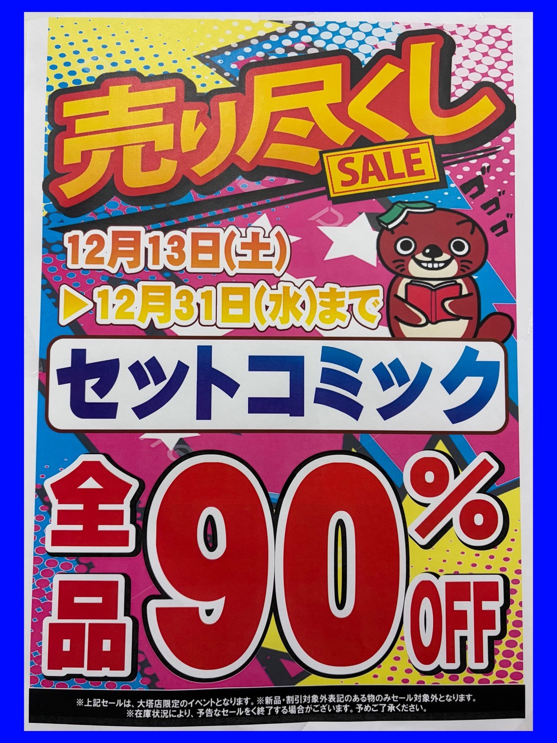 【佐世保3店大塔店】売りつくし SALE 開催中! new イベント情報 新着情報 マンガ倉庫佐世保3店 マンガ倉庫大塔店 CD/DVD/Blu-ray おもちゃ カード トレカ コミック/書籍 ファッション 2026年1月8日 ★大塔店★ 🎄売りつくし SALE 開催中🎄 おもちゃ全品🧸 レジにて30%OFF!!!! 古着・ファッション全品👖 レジにて50%OFF!!!! 本・CD&DVD 📚 単品1点 10円(税抜)!!!! セットコミック 90%OFF!!!! カード🃏 全品30%OFF!!!! コレクション中のグッズ、狙っていたアイテム等々、この機会にぜひ、お買い求めください🙈🍌 1点ものも多いため、早い者勝ちですよーっ👾👾 ご来店 お待ちしております🐰🥕 関連