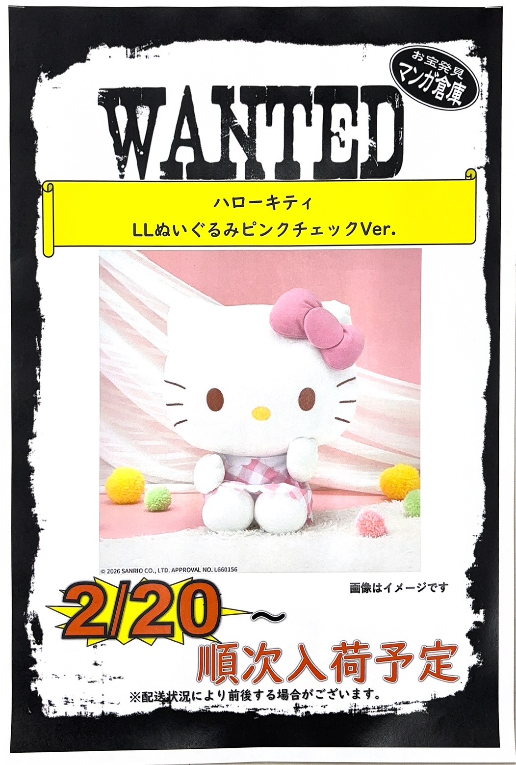 ハローキティ LLぬいぐるみ ピンクチェックVer.