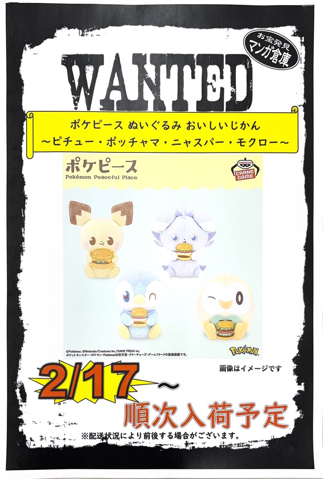 ポケピース ぬいぐるみ おいしいじかん~ピチュー・ポッチャマ・ニャスパー・モクロー~
