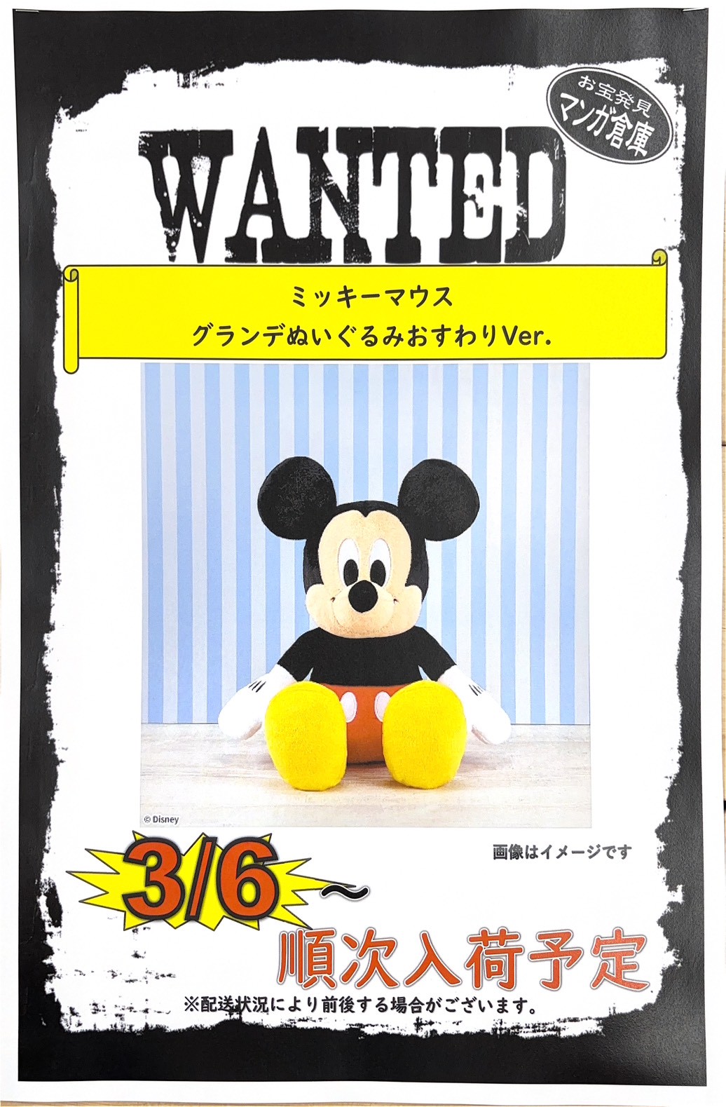 ミッキーマウス グランデぬいぐるみ おすわりVer.