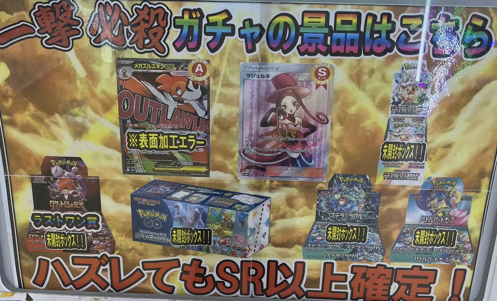 【佐世保2店広田店】ガチャ情報です!■ マンガ倉庫佐世保2店 マンガ倉庫広田店 カード トレカ ガチャ 2026年4月16日 【広田店】 一撃ガチャ更新しました! ズルズキンMA※表面加工エラー ラジュルネ SR ラストワン賞にロケット団の栄光 未開封BOXを含む豪華ラインナップとなっておりますのでこの機会にぜひ遊びに来て下さい! ほのおのうずガチャリニューアルしました‼ 必ず鍵が出る仕様で 1回¥2,000 全38口 ラストワン ニンジャスピナー ご来店お待ちしております‼ 関連