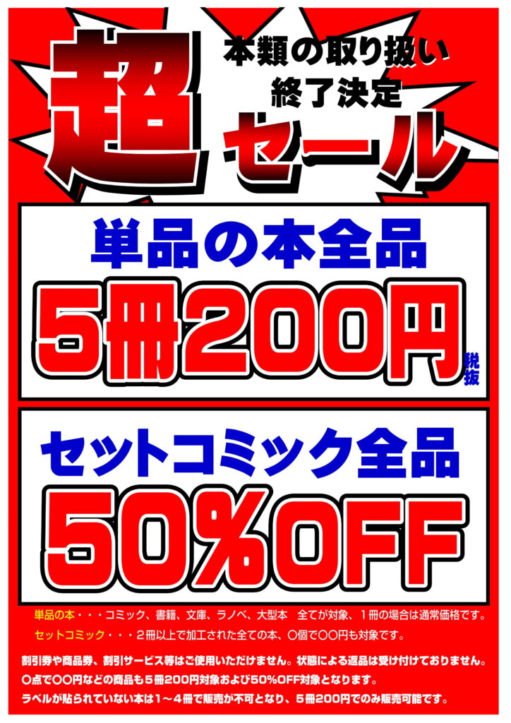 【時津店】本類取り扱い終了決定超セール!...