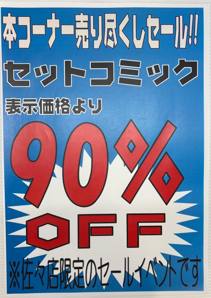 佐々店 本コーナー売り尽くしセール開催中! 全商品90%OFF!! 人気コミ…